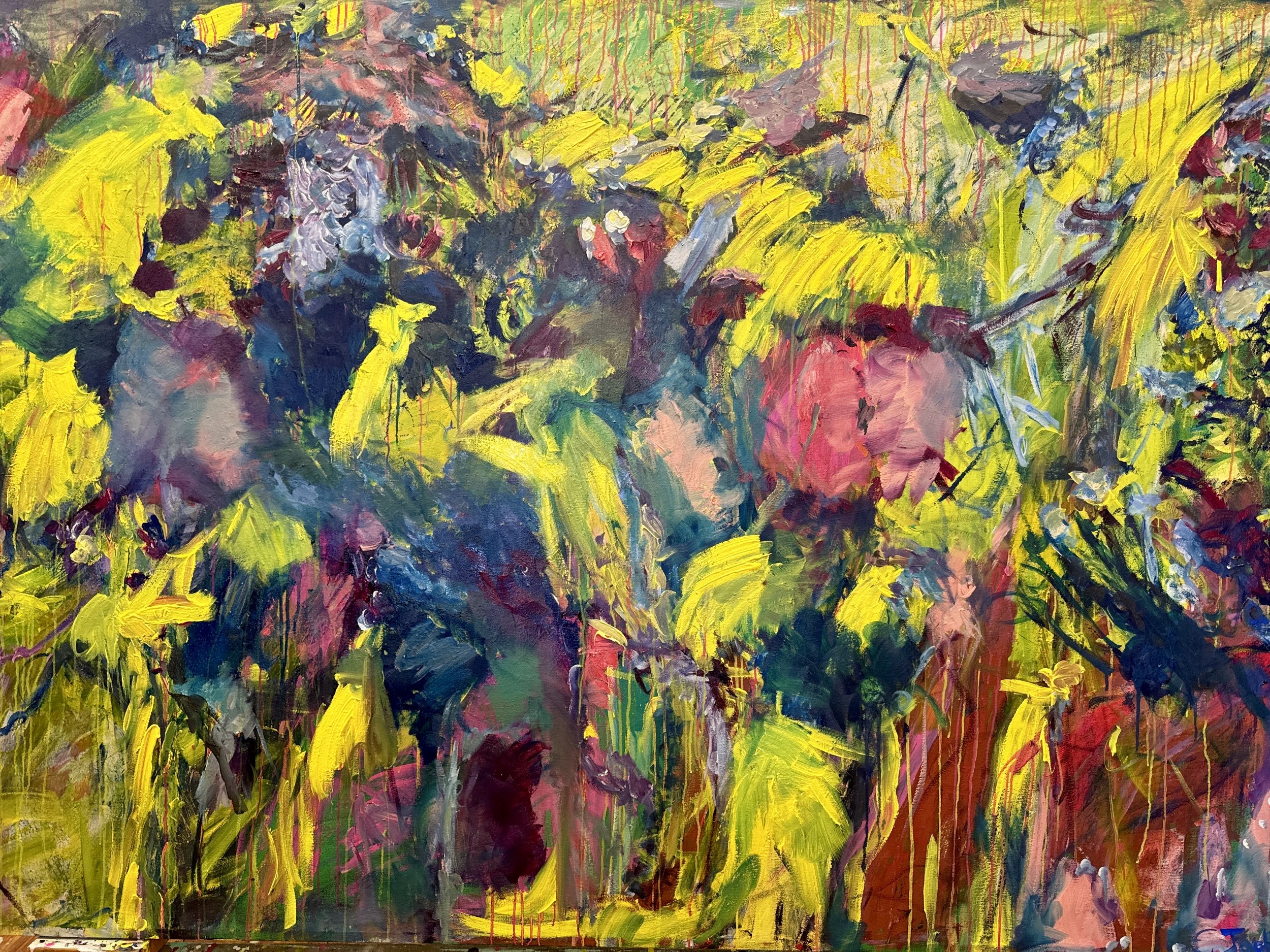 (Available) And it was all Yellow - Oil, Oil stick, Crayon on raw canvas 2025 - Roughly 6ft x 8ft