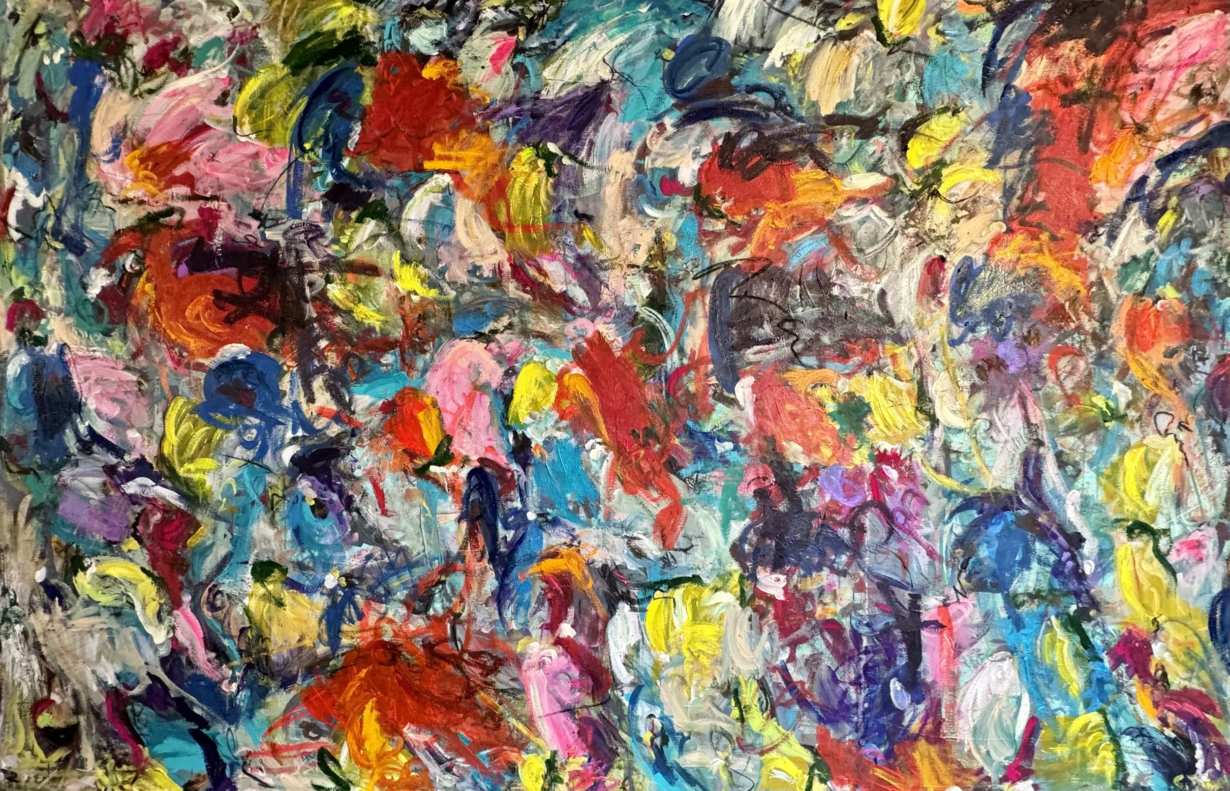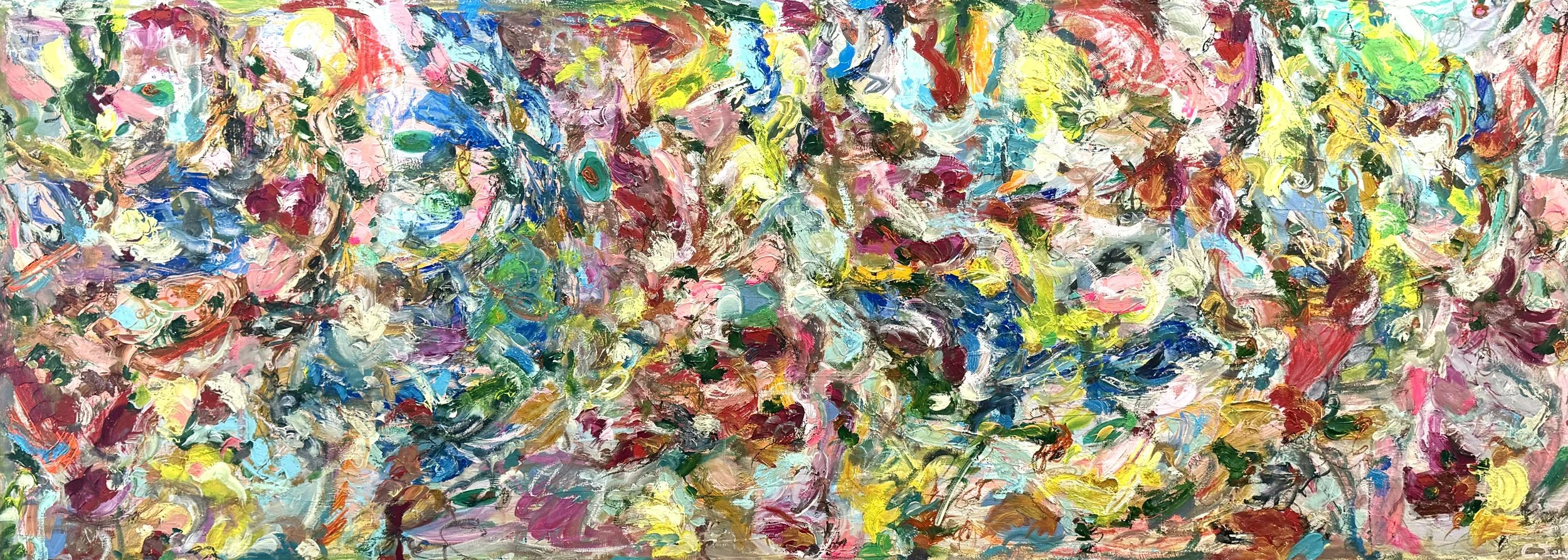 Thick Texture, Heavy Body, French Country Inspired Piece - 4’.4 x 10.5’ Mixed Media on Raw Canvas