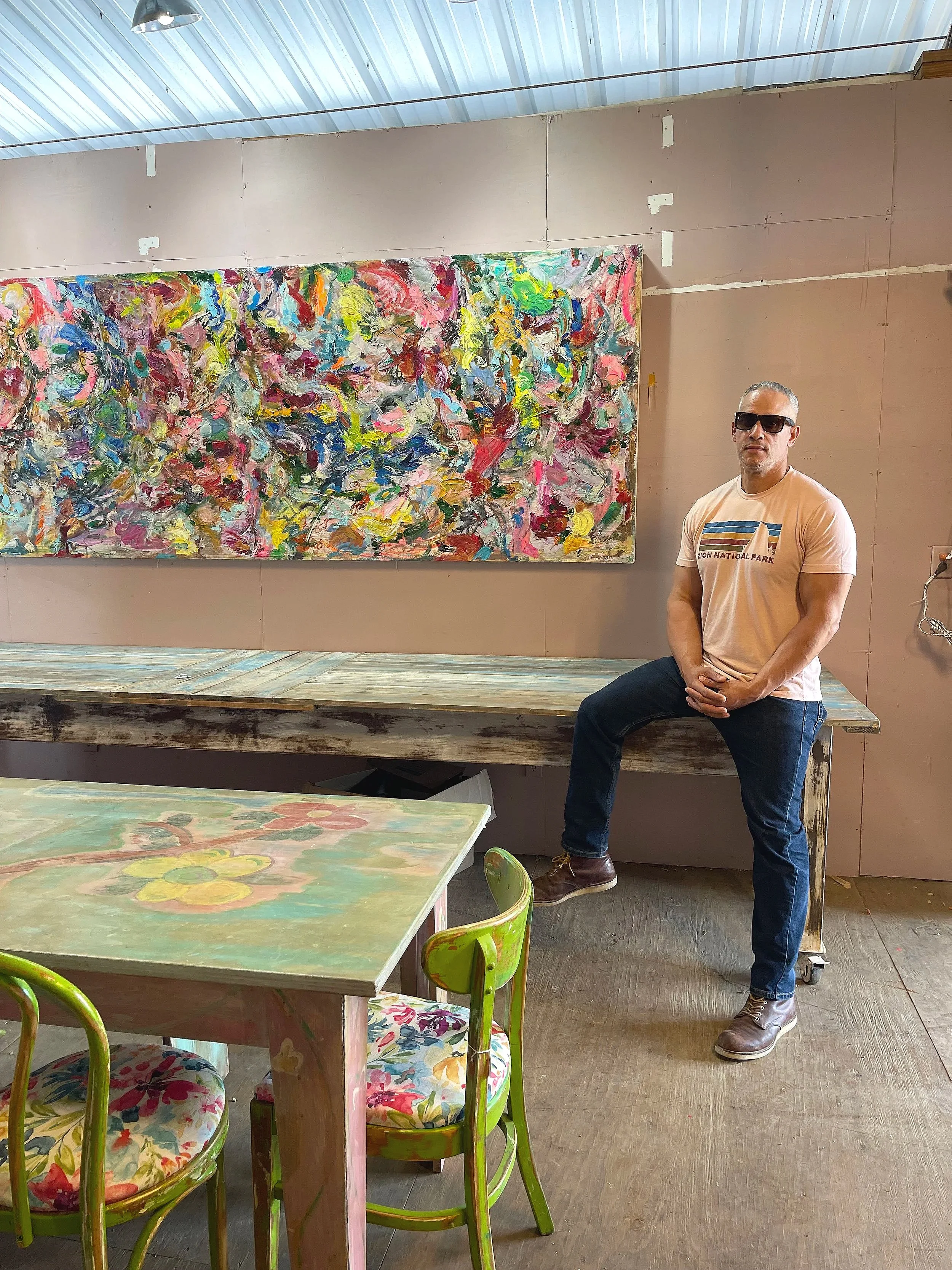 Untitled. 48”w x 84”l x 3.5”d Oil and acrylic on raw canvas